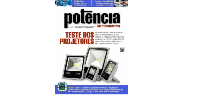 A Revista Potência (Ed. 234 – Jul/25) publicou matéria sobre ensaios para medição de potência elétrica (W) e fluxo luminoso (lm) em projetores de LED comercializados no Brasil, realizados em laboratório independente, em que diversos produtos falharam nas medições.